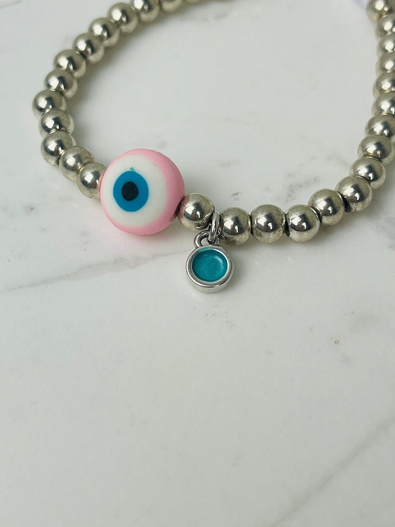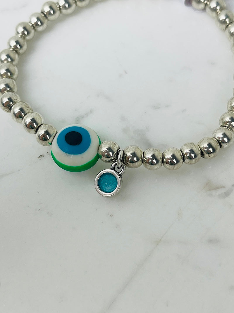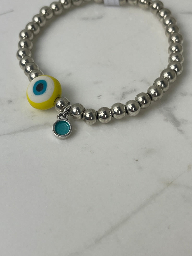 Sweet colorful evil eyes on a band of simple beads. What more do you need? It’s believed that the evil eye will protect you from any bad energy that comes your way.