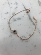 0.25″ mati charm on silver, rose gold or gold plated silver. Adjustable clasp closure. Handmade in Greece