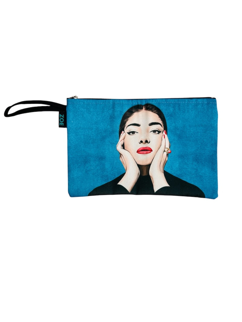 This cute cotton pouch can carry all your accessories. This pouch pays homage to Maria Callas, the pre-eminent opera soprano known throughout the world.