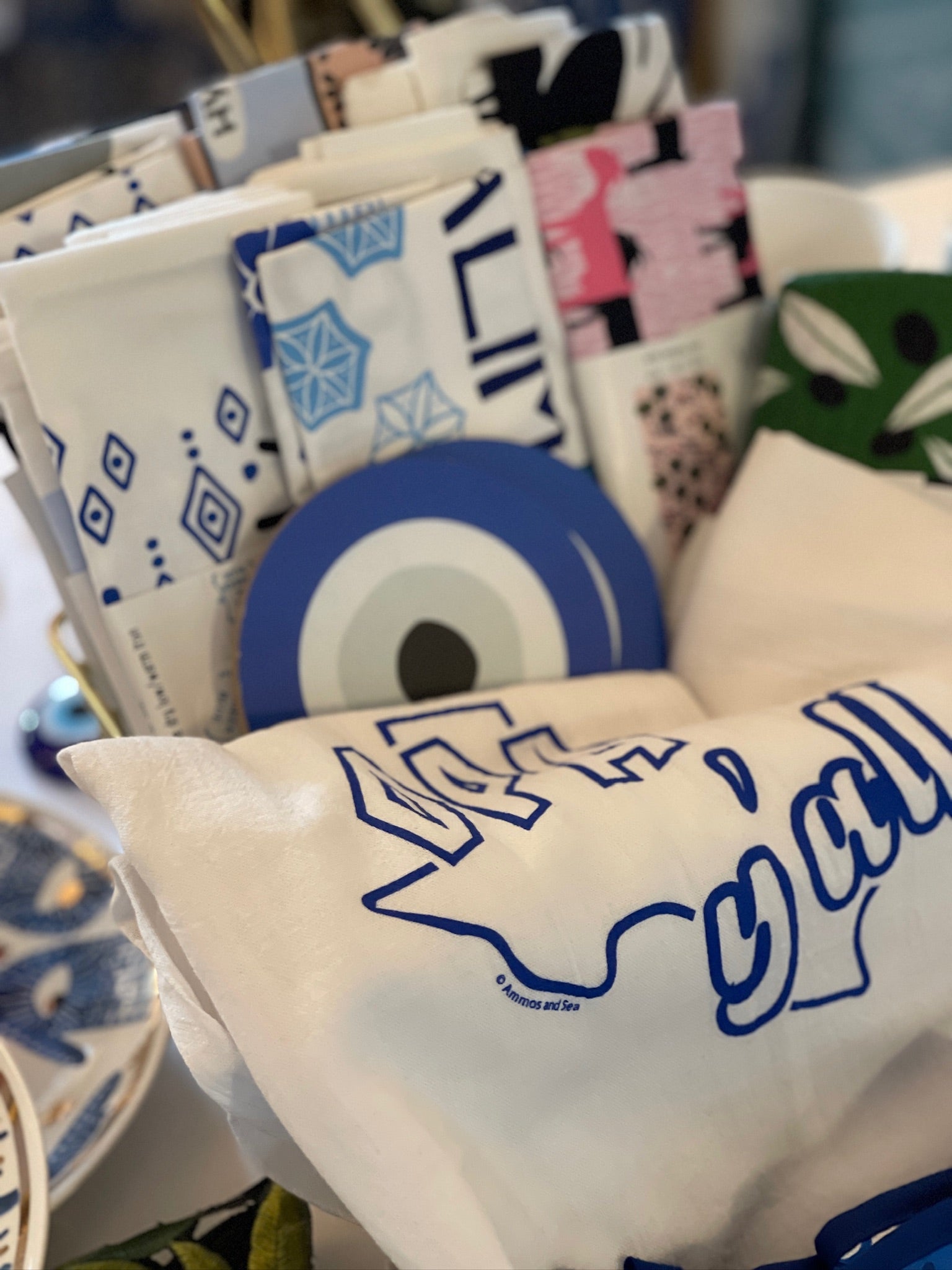 As childhood friends, Betsy and Anastasia had always shared a unique bond with their love of all things reminiscent of Greece and the Mediterranean, and in 2017 founded Ammos and Sea to share this passion with the rest of the US. With shipments arriving monthly, Ammos and Sea constantly offers something unique and new to choose from. Their best sellers include home decor, from hand painted ceramics to quirky printed tea towels, beach and resort wear made from the softest Greek cotton, and a wide array of jewelry utilizing materials such as silver, silk, and semiprecious stones.