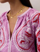 Inspired by Greece and the world, Etoile Coral specializes in resort wear and stands out for its carefree spirit and bohemian chic aesthetic. Designed for the woman who loves to travel and wants to always be on trend, whichever place she chooses for her vacation. With attention to detail and lines that flatter every shape, their pure silk and cotton garments are embroidered, becoming a must item for every effortless cosmopolitan look. From the simplest to the most elaborate, Etoile Coral pieces feel comfortable in every resort or city destination, taking you on a journey across the golden beaches of the mediterranean islands and dressing you with the white and bluish hues of the aegean, the colors of the bougainvillea flowers and the glow of the summer sun.